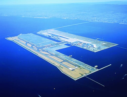 Ubicado en Osaka (Japón) y construido sobre una isla artificial para evitar los efectos de los terremotos, este aeropuerto solo es accesible por una línea de tren. Es el único aeropuerto visible desde el espacio y debido al calentamiendo global se espera que en, aproximadamente 50 años, se hunda bajo el mar.