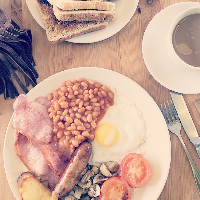 El clásico English Breakfast que lleva alubias, salchichas o bacon (o las dos cosas), huevos y tostadas. Todo esto acompañado de una taza de té con un chorrito de leche, ¡energía inglesa para todo el día!