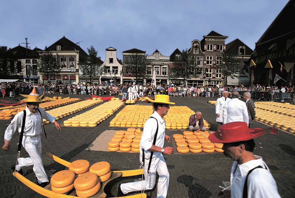 Si Holanda es conocida por algo (a parte de sus coffe shops en Amsterdam) eso es por su queso. Es uno de los principales países productores de queso y de aquí son famosos el Gouda y el Edam, por ejemplo. Uno de los principales atractivos es el famoso Mercado del Queso de Alkmaar, ciudad del norte ubicada a 34km de Amsterdam, donde se puede llegar fácilmente en tren (unos 36′). Este mercado nació en 1622 está considerado uno de los más antiguos del mundo y, desde entonces, no ha perdido éxito. Se celebra cada viernes de abril a septiembre y…. ¡no tiene desperdicio!