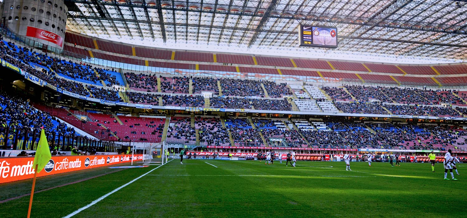 La primera parada obligatoria no es otra que el estadio de San Siro, también conocido como Giuseppe Meazza, dependiendo de quién juegue esa noche. Y es que la ciudad de Milán posee una anomalía destacable: sus dos grandes equipos comparten el mismo estadio. El estadio fue inaugurado en 1926, precisamente con un partido entre el A.C. Milan y el FC Internazionale, el llamado Derby della Madonnina, un duelo fraticida que todos los años parte la ciudad en dos. Grandes jugadores como Ronaldo, Ibrahimovic, Baggio o el propio Giuseppe Meazza conocen bien las dos caras del derby, ya que todos ellos militaron en ambos equipos.